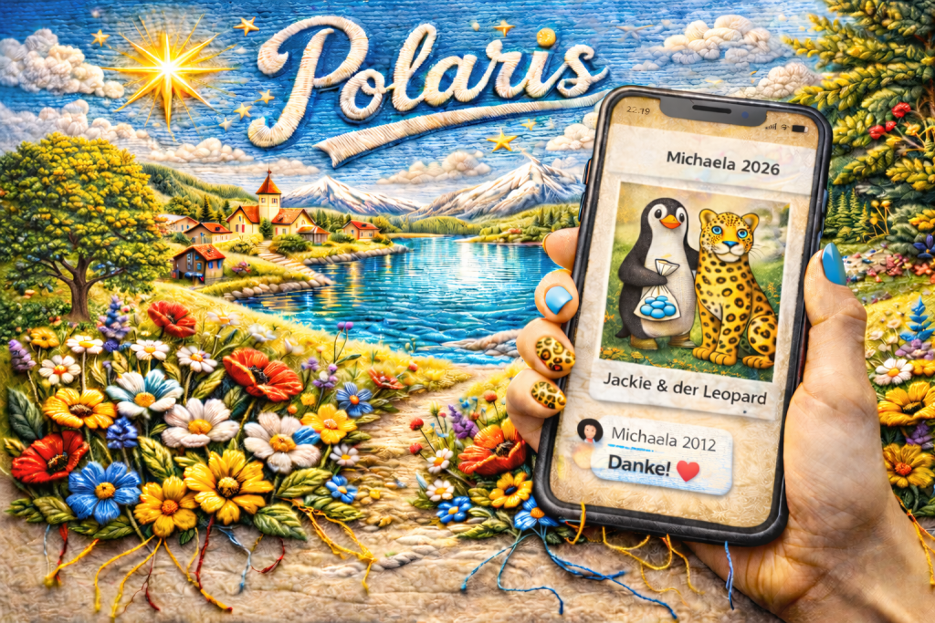 Also, liebe Michaela ID *30000169, die ich dich im Februar 2012 erreicht habe! Als ich meine zweite Episode von „Jackie & der Leopard“ geschrieben habe, hab ich gemerkt, dass du tatsächlich einen Weg gefunden hast, direkt mit dem Leoparden zu kommunizieren. Ich muss unbedingt auch ein Update auf Polaris V.2.0 machen, um auch mit Nicht-Michaelas in Kontakt treten zu können.